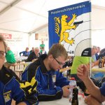 Das Mittagessen nahmen wir gemeinsam in der sehr leistungsfähigen Festwirtschaft ein. Unser Präsi kam auch zu seinem Fleichvogel wenn auch mit etwas verzögerung da bei Service nur 7 Menüs bestellt wurden trotz 8 Stichen auf dem Tisch.