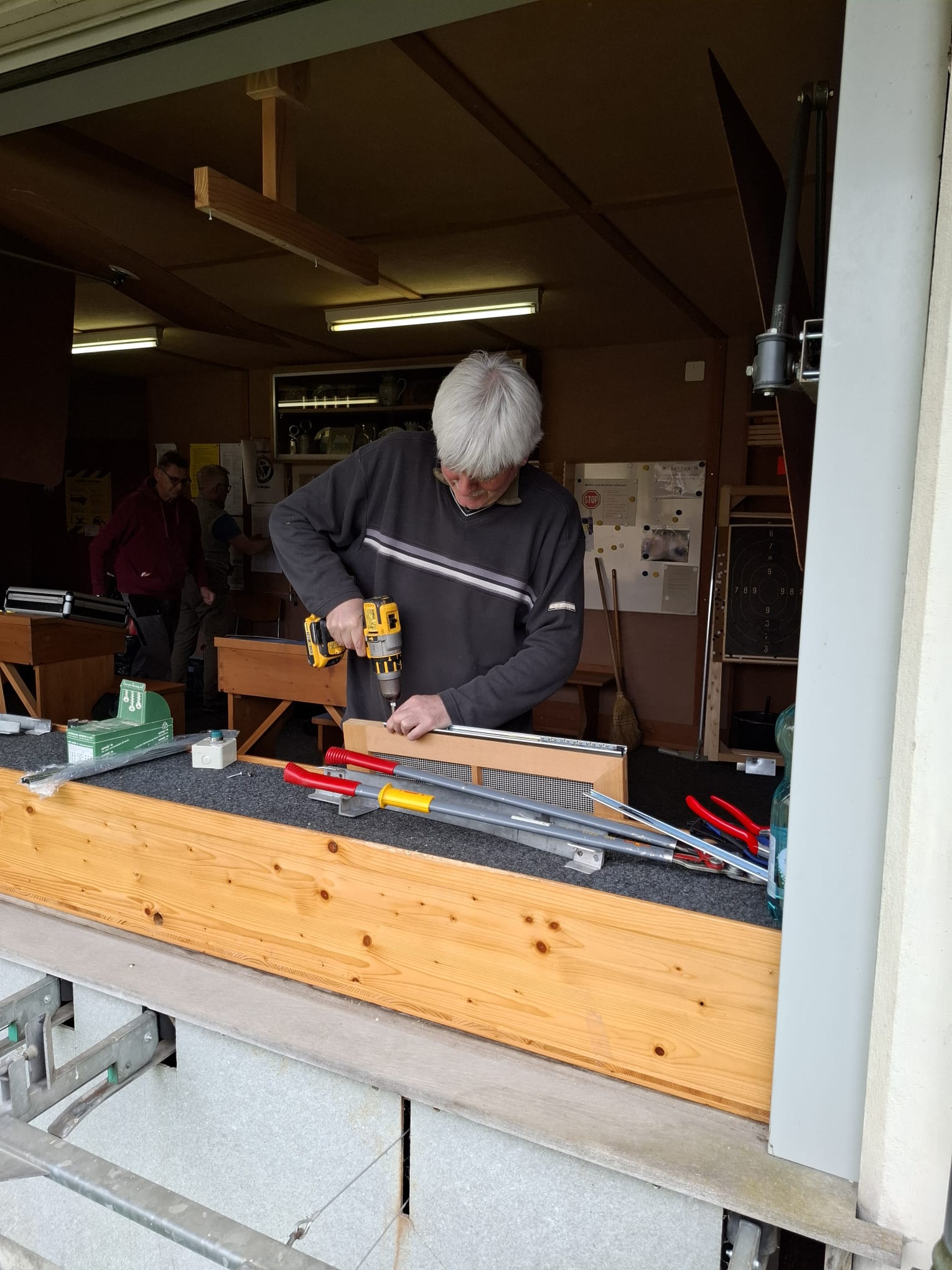 Wir haben uns wieder zur alljährlichen Instandhaltung getroffen. Das Schützenhaus wurde geputzt, Sträucher zurück geschnitten und Scheiben repariert .